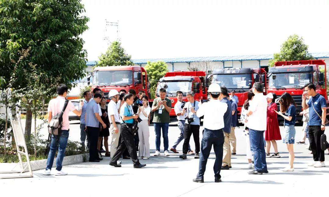 天空湛藍如洗,廠區干凈整潔、綠樹成蔭花香襲人,在程力汽車集團商用車工業園,各種專用車輛如接受檢閱的儀仗隊,觀摩團采風團的伙伴們,抑制不住內心的激動,一下車就被廠區震撼的畫面所吸引,不停的搶鏡頭忙抓拍。