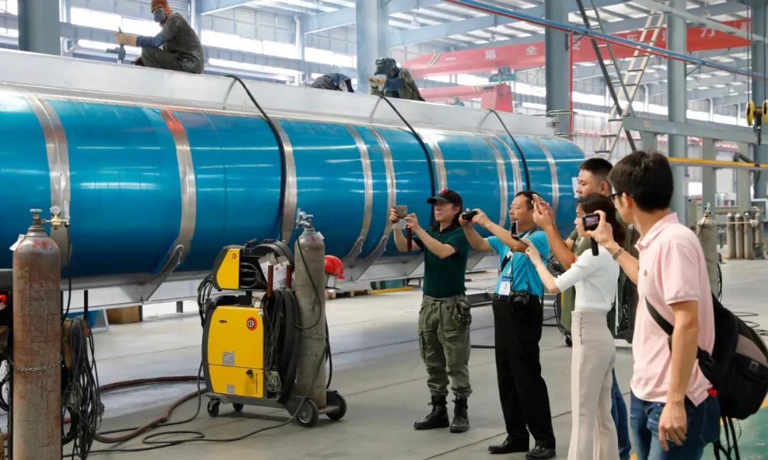 在觀摩采風過程中,網絡名人大咖們被眼前的龐然大物給震驚了,這么大個罐體得裝多少液體啊? 并且這樣的鋁合金罐子已實現了輕量化,是節能減排的急先鋒,程力人真不簡單,為環保建設及綠色發展做出了自己應有的貢獻。短暫的采風活動就要結束了,讓我們把美好的瞬間定格在鏡頭里,銘記在內心深處吧。