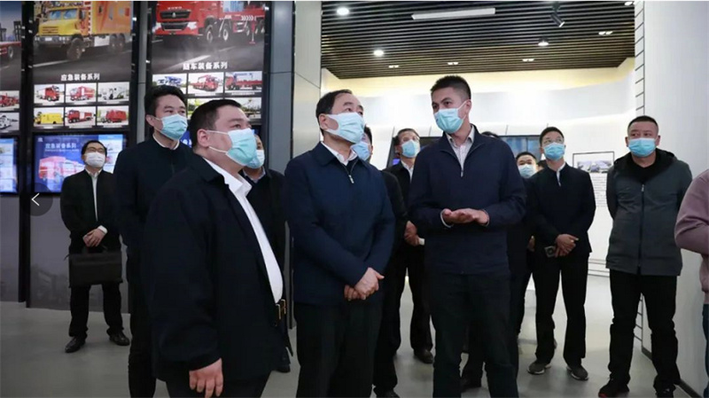 右上圖:湖北省副省長趙海山(左二)、隨州市政府副市長黃繼軍(左三)與程力汽車集團董事長程阿羅(左一)等負責人參觀程力專汽5G數(shù)字云展廳。 程力集團高質量發(fā)展的重大舉措引起了湖北省領導的高度重視,近日,趙海山副省長一行領導,在隨州市副市長黃繼軍、曾都區(qū)區(qū)委姜晧,以及隨州市、曾都區(qū)政府職能部門負責人的陪同下,赴程力汽車集團進行專題調研,他首先參觀了程力汽車集團5G數(shù)字云展廳,對程力集團跨越式發(fā)展與對地方經(jīng)濟建設的貢獻,表示了充分肯定;鼓勵企業(yè)以新技術、新材料、新工藝為重要抓手,以研發(fā)生產(chǎn)氫燃料動力整車和新能源商用車暨應急裝備產(chǎn)品轉型升級為突破口,一心一意謀發(fā)展,堅定不移地走科技創(chuàng)新和綠色環(huán)保可持續(xù)發(fā)展之路。