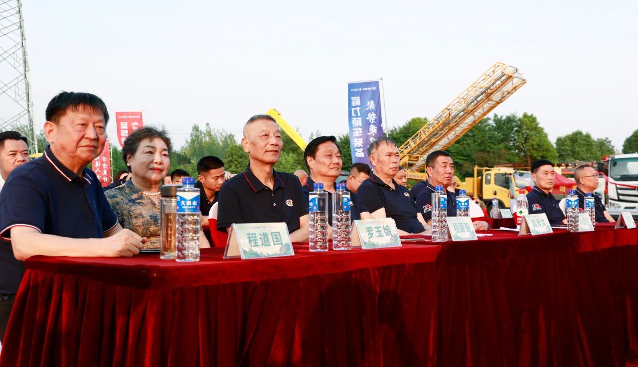 程力汽車集團副總經理劉峰(左一)、倪文濤(左二)、倪文進(左三)及江鈴銷售有限公司服務管理中心總經理張平(左四)、江鈴銷售有限公司傳播管理中心總經理魏喜樂(左五)前排就坐。鼓槌落下,如驚雷喚醒山河