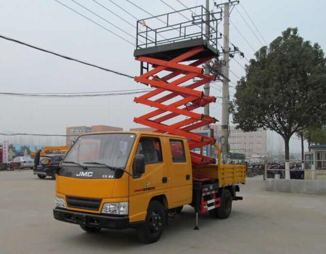 中高端化江西五十鈴(JMC)新款順達車載剪叉式液壓升降平臺高空作業車優點在于: