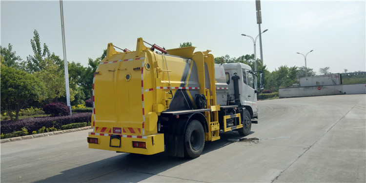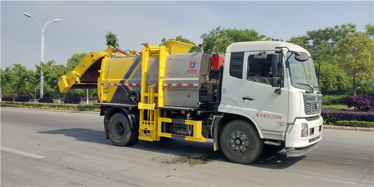 國六東風天錦方罐10-12方餐廚垃圾收集車底盤配置:采用東風天錦系列新款駕駛室,4700mm軸距,搭載國六(國Ⅵ)康明斯210馬力柴油發動機,東風6檔變速箱,9T后橋,10.00R20鋼絲胎,ABS,標配電動窗、中控鎖、鑰匙、日間行車燈、自動落鎖、斷氣剎、定速巡航、瞬時油耗,科技感十足,駕乘更舒適,GB7258新規。 國六東風天錦方罐10方餐廚垃圾收集車上裝配置:罐體容積10方,采用4mm碳鋼制作,圓距形罐體,液壓系統,配拉桿式提升機,可掛120/240升垃圾桶,推鏟卸料,具有干濕分離,罐體尾門液壓打開和鎖緊+手動鎖緊裝置,罐尾設液體自流閥,液位窗,后門液壓開啟。用于運輸液態垃圾,其特點操作簡單,密封性好,無泄漏,無異味,常用于餐館的垃圾轉運處理。 此款環衛垃圾車可加裝配置:1、罐體內部固液分離功能(全推推板,不銹鋼泔水分離網板);2、罐內加熱功能(用于嚴寒地帶防止罐內餐飲垃圾凍結凝固,采用柴油燃燒機加熱,加熱速度快效果好,可設置高低溫實現自動溫控);3、稱重功能(垃圾桶提升架稱重計量);4、罐體清洗裝置(加裝高壓泵與高壓水槍);5、吸污功能(利用真空吸污裝置直接將餐飲垃圾吸入罐體)