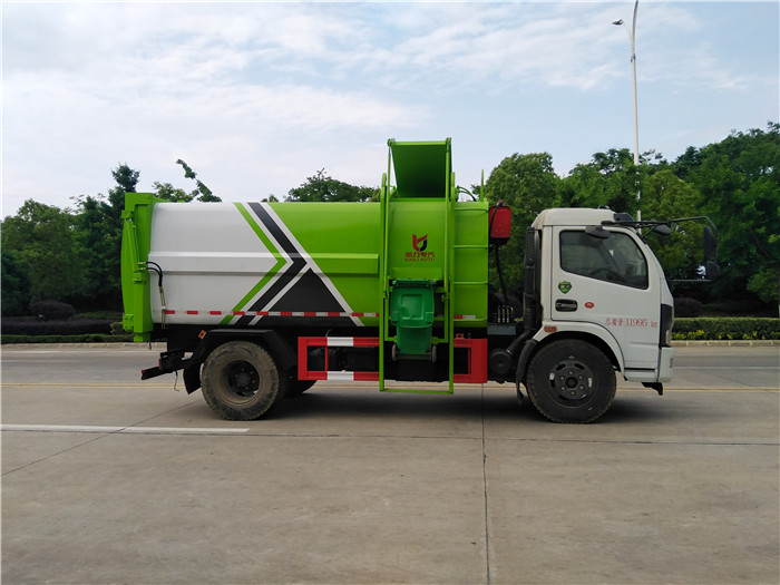 自裝卸式垃圾車優(yōu)點: 1,壓縮式垃圾車的換代產(chǎn)品; 2,容積大7.立方,3360軸距壓縮車裝載量240升垃圾桶120桶左右. 3,自重輕,燃油經(jīng)濟性高, 4,故障率低,售后率低,壓縮垃圾車液壓系統(tǒng)復(fù)雜,該車型液壓系統(tǒng)簡單,并配置高壓過濾器,保護液壓系統(tǒng),只有提升機油缸,推板油缸,后面舉升油缸。 5,該車型配置液壓反向鎖死機構(gòu),并使用硅膠密封條,可杜絕箱內(nèi)壓縮垃圾時,后門開縫漏污水,越壓縮后門鎖死越緊,后門采用壓縮垃圾站式加強型后門,抗擠壓抗變形。 湖北程力國六東風(fēng)大福瑞卡(多利卡)側(cè)裝掛桶自裝卸式垃圾車程力威牌CLW5122ZZZ6SL型自裝卸式垃圾車圖片: |