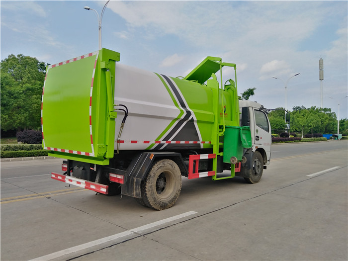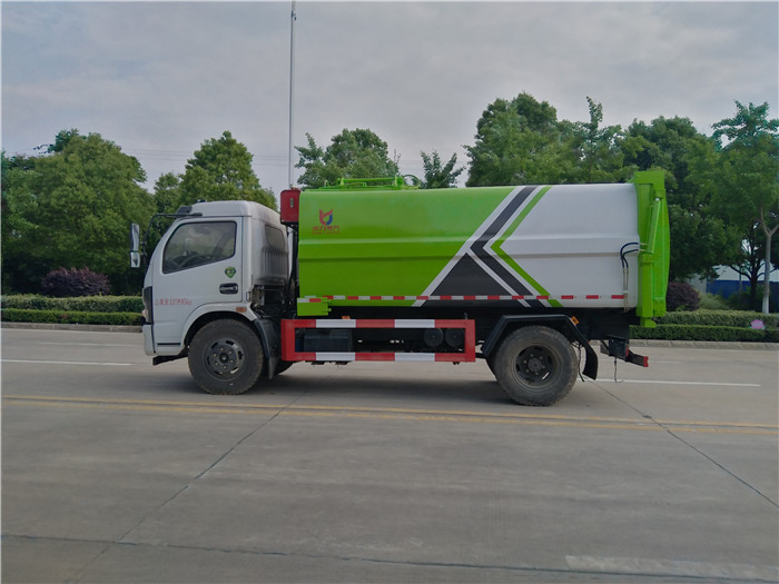 國六東風(fēng)大多利卡側(cè)裝壓縮掛桶自裝卸式垃圾車箱體為圓弧形新型加強型,箱體容積7.5 立方,壓縮方式為液壓底推推板,提升機為機拉桿式,后門液壓反向鎖死,箱體材料為Q345B錳鋼制作,材料厚度為4個厚,液壓閥為中梅或長源牌,液壓缸為海普瑞斯,齒輪泵為合肥長源牌,箱體尾部加裝污水槽,可有效防止垃圾二次污染。