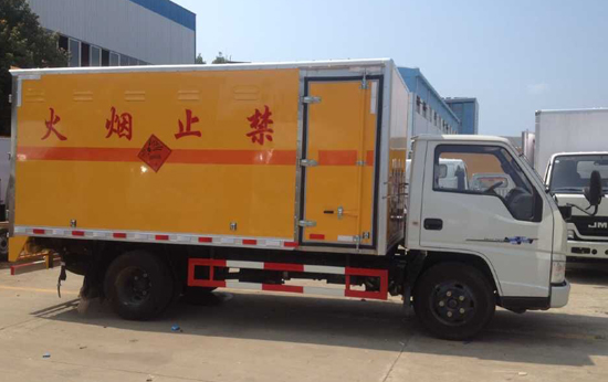 專用功能說明: 1、爆破器材運輸車底盤的型號可分為:東風(fēng)、江鈴、江淮、奧鈴、時代、歐曼、慶鈴、解放等。驅(qū)動形式可分為:雙驅(qū)動和四驅(qū)動,按額定載質(zhì)量有0.5噸—9.9噸(國防科工委要求最大上戶噸位不超過10噸)。 2、廂體分為兩部分:A:運輸炸藥;B:運輸雷管(抗暴容器);C:炸藥,雷管同時運輸(廂體必須隔倉,分倉運輸,加裝抗爆容器)。廂體為雙層金屬骨架結(jié)構(gòu),外部為冷扎鋼板,內(nèi)壁采用鋁合金板蒙面,夾層為隔熱阻燃材料填充。設(shè)置對開門,如需安裝抗暴容器則增開側(cè)門,側(cè)壁設(shè)有防雨功能自然通風(fēng)窗口,以使廂內(nèi)外空氣流動,廂體內(nèi)部做防靜電處理,廂體底部與廂內(nèi)前部鋪有阻燃導(dǎo)靜電膠板,并與底盤等電位連接,通過車輛后端的導(dǎo)靜電裝置與大地相連,可防止靜電火花的產(chǎn)生和車輛靜電及時釋放,提高爆破器材運輸車的安全性。廂體內(nèi)部前面和側(cè)面裝有固定拉環(huán),與捆綁帶使用捆綁貨物以避免移動,保證安全。 3、 感煙報警器:是感測車廂內(nèi)火情的專用裝置,安裝在車廂內(nèi)頂部,并與駕駛室內(nèi)報警裝置連接,當有火情煙霧出現(xiàn),在駕駛室進行蜂鳴報警通知駕駛員,保證及時消除險情。 4、防盜報警器:為了保證安全,在車廂后方和側(cè)面開設(shè)有門,在各門器框上方安裝有門磁開關(guān)報警器(根據(jù)用戶要求選裝防盜監(jiān)視器。行車記錄儀等)當廂門被打開時,駕駛室內(nèi)的蜂鳴器發(fā)出報警聲音,不使用時可將駕駛室內(nèi)的控制開關(guān)關(guān)閉。可保證在行駛過程中,整車始終處于受控狀態(tài)。 5、整車發(fā)動機排氣裝置采用前置式,并安裝有排氣火花熄滅器(防火罩),防止熱源對爆炸物產(chǎn)生不良影響。 6、底盤上裝有兩條拖地導(dǎo)靜電膠帶,廂體外側(cè)安裝示廓標記燈以及手提滅火器等安全裝置。 7、車身顏色為黃色,并有“嚴禁煙火”和“爆”字樣,貼有反光標識。 |