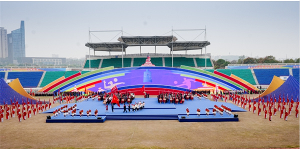 開幕式后,大型文體展演《隨心逐夢》拉開帷幕。文體展演分為《炎黃一脈》《鐘情千秋》《星火四方》《鵬程萬里》四個篇章,將隨州特色元素和人文精神融入其中,加以競技體育和全民健身內容,生動展現了隨州這座城市的活力與激情。