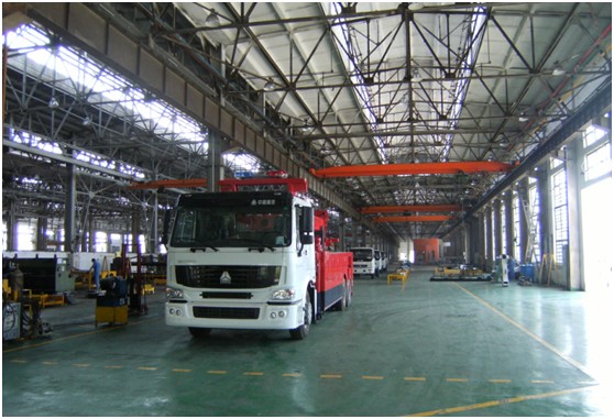 車輛生產過程是根據圖紙下料,下料之后各個工位開始焊接生產,對車輛的后懸進行調整。經過數日的生產,成型的結構件首先會經過打磨然后去電泳,防止上裝在經過雨雪等惡劣天氣清障車車廂流黃水生銹的狀況。電泳過的結構件會放到安裝工位,按照生產流程對結構件進行安裝,將整個上裝安裝在車架上,安裝后完畢后,就會進入噴涂車間,對清障車的上裝進行噴涂。