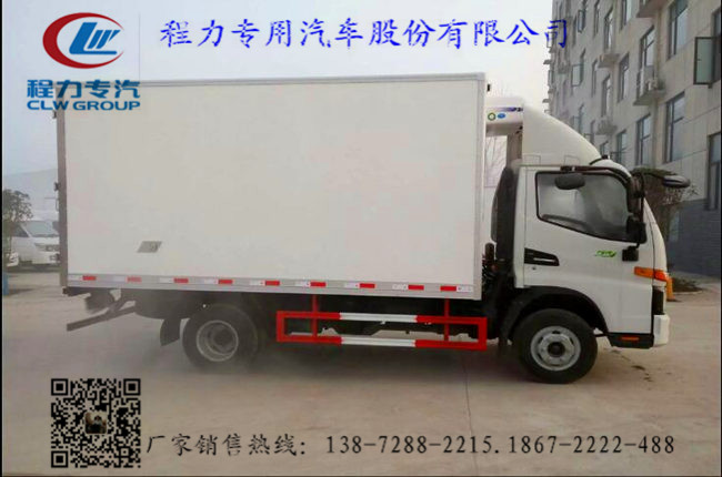 3.上裝配置:廂體內部有效尺寸:單排長4.03米/排半長3.7米×寬2.08米/1.9米×高2米/1.9米,廂體蒙皮采用內外玻璃鋼,隨客戶選擇內置槽鋼焊接骨架或者玻璃纖維超輕高強度骨架,填充8cm聚氨酯保溫層,不銹鋼包角,不銹鋼門框,不銹鋼門鎖件,防滑花紋鋁底板,配后雙開門,車廂右側可以加開側門,-5~-18度制冷機組。