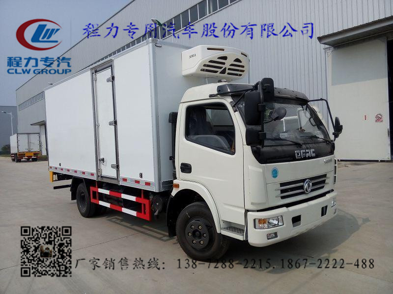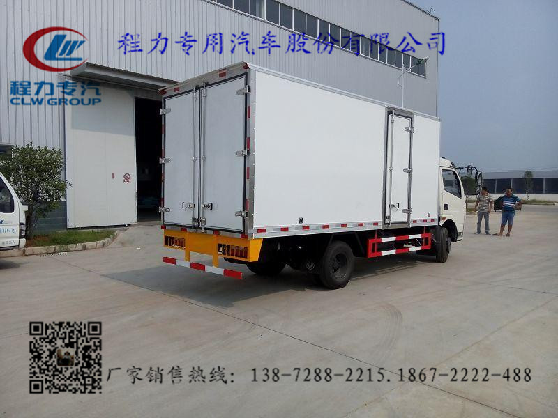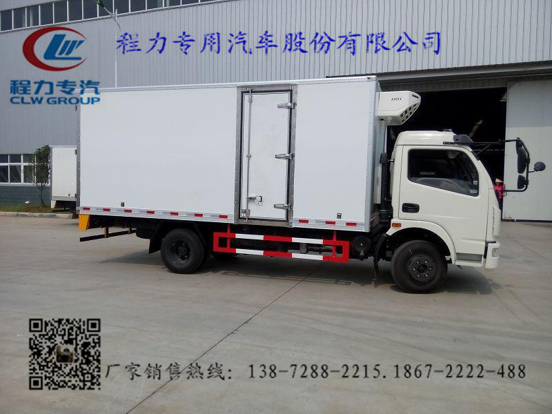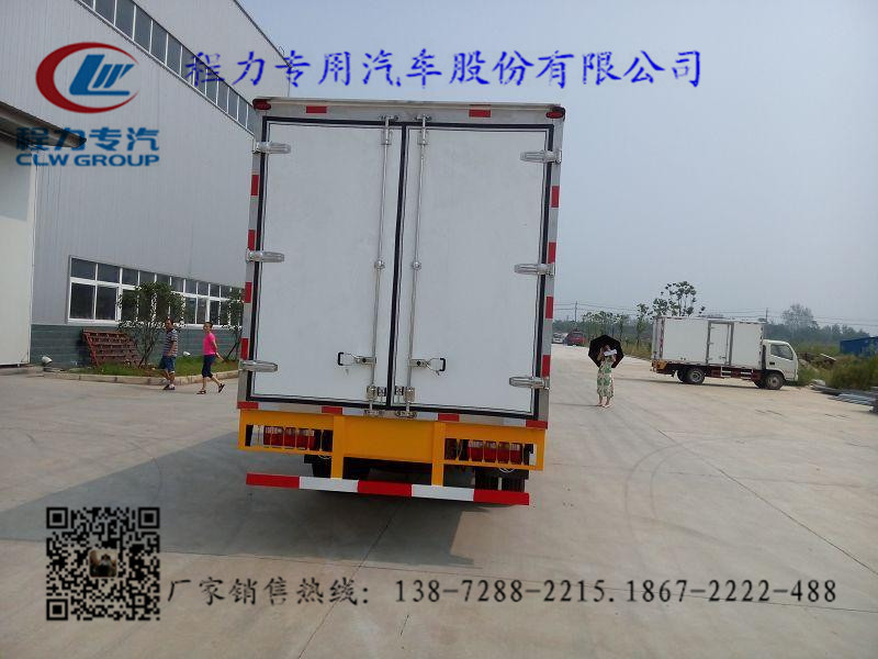 2.上裝配置:冷藏廂內部有效尺寸:長5.0米×高2.05米×高2.1米;冷藏廂體蒙皮采用內外玻璃鋼,隨客戶選擇內置槽鋼焊接骨架或者玻璃纖維超輕高強度骨架,填充8cm聚氨酯保溫層,不銹鋼包角,不銹鋼門框,不銹鋼門鎖件,防滑花紋鋁底板,配后雙開門,車廂右側可以加開側門,-5或者-18度制冷機組選裝T型材通風槽,導軌,肉鉤等輔助設施