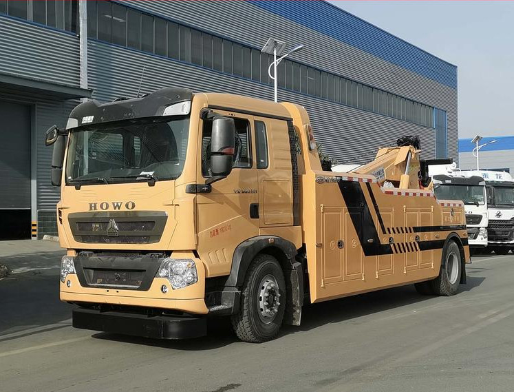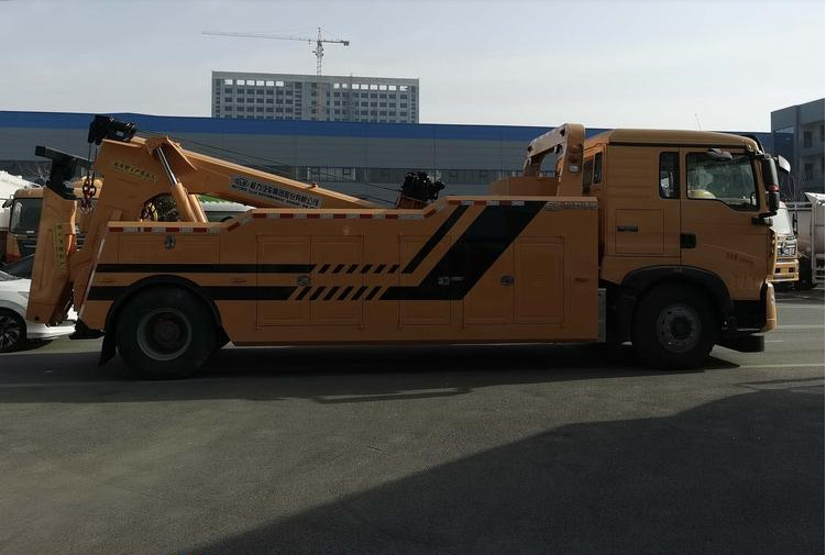 湖北程力國六豪沃單橋托吊連體清障車程力威牌CLW5183TQZZ6型清障車廠家配置: 16噸國六重汽豪沃單橋拖吊聯體清障車:底盤型號ZZ5207V6017F1,HW76新款前臉駕駛室,國六MC9.3B-60發動機,HW19710變速箱+HW70法蘭式取力器,HR7前軸,ST16自調臂單后橋(鼓式制動),HR7前軕(盤式制動);雙層車架(8+5/300),ZF8198方向機,前后標準版多片簧(10/9+6);低位杠,帶ABS,標準版排氣系統,無氣候包,12.00R20,速比3.93;選裝冷暖空調,選裝300L油箱,選裝整車前下防護,選裝中國重汽智能版; 湖北程力國六豪沃單橋托吊連體清障車上裝配置:10噸、12噸后托臂,雙8噸絞盤,聯體式上裝,進口閥,二節式六邊型吊臂,三節托臂,分體式車廂,電泳漆,雙側聯動操作裝置,三十五米鋼絲繩,直徑16mm,配置四套鋼叉,二套拖叉座,一套鋼板吊耳拖叉,輔助氣管總成一套,工程警燈一套。 湖北程力國六豪沃單橋托吊連體清障車程力威牌CLW5183TQZZ6型清障車圖片價格: