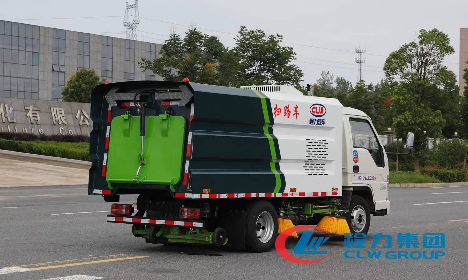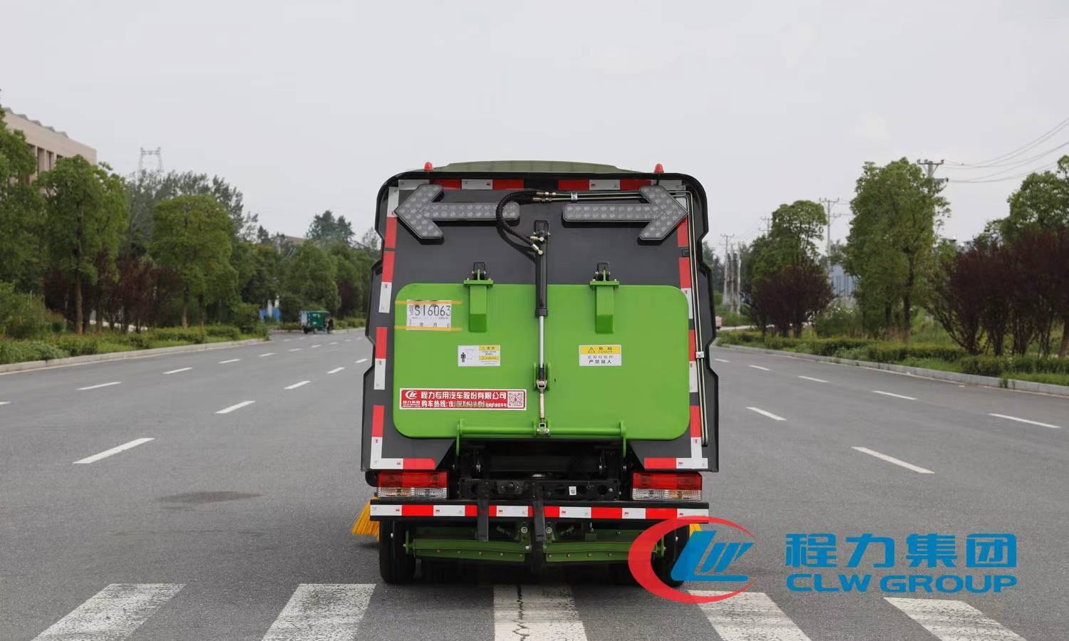 采用吸掃結合的方式收集垃圾,濕式除塵、電液控制,液壓傾翻卸料的作業方式對路面進行清掃作業。