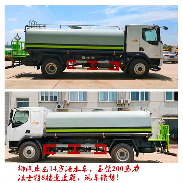 國六柳汽單橋14方綠化噴灑車(霧炮灑水車)底盤配置:軸距4500、L31駕駛室、YCS04200-68、8JS75C、Φ395離合、3.6T前橋、8T/4.875后橋、板簧8/9+5、車架231(6)、200L鐵油箱、 輪胎10.00R20、國產方向機、半浮式駕駛室懸置、手動液壓翻轉、機械減振司機座椅、夾層玻璃、加厚鋼圈、MP3+收音機、空調、ABS、車載終端(行駛記錄儀+兼容北斗GPS)、多態開關、右轉提示功能、國產閥、ABS、自調臂、免維護電池、電控硅油風扇、車下起動停機功能、駕駛室電源總開關、PTO開關、遠程PTO接口、取力器開關及電磁閥、取力器氣管路,罐體容積15方,主管道加粗,罐體自動焊,大梁不動焊