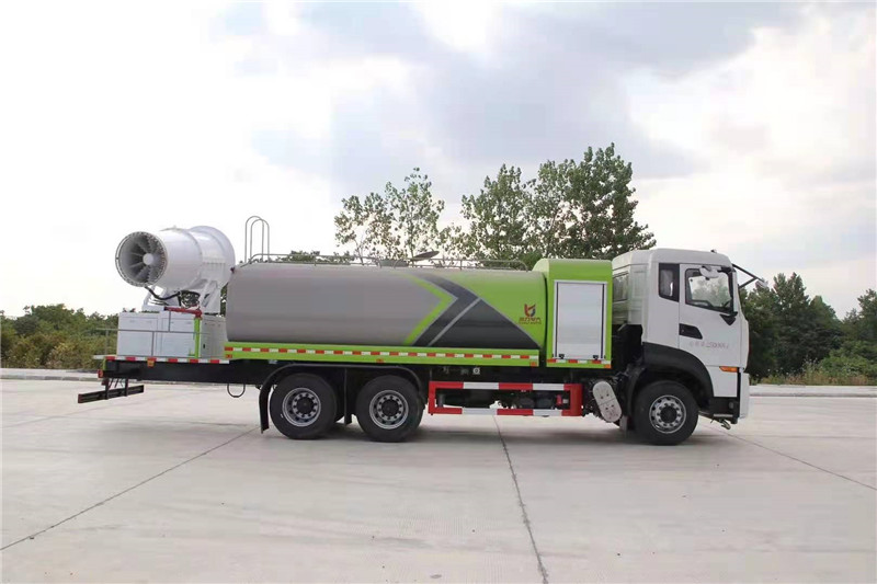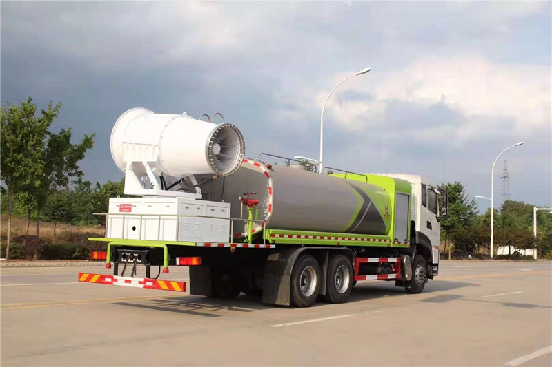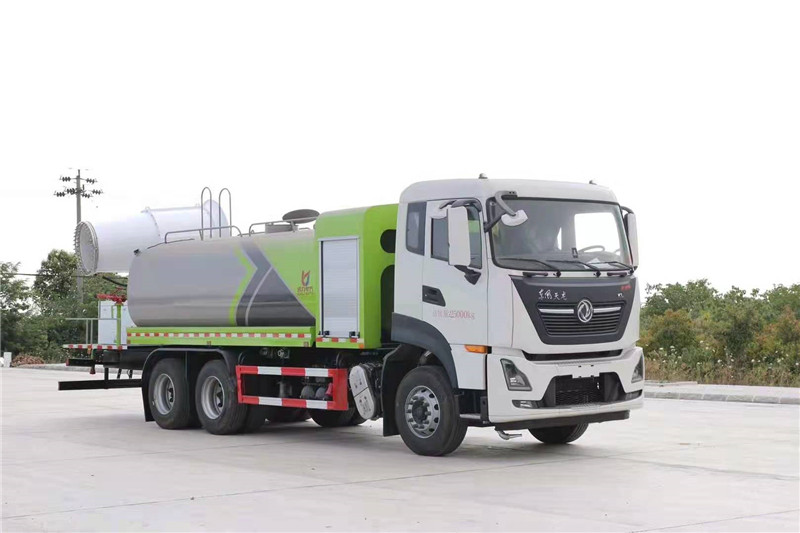 國六東風天龍后雙橋多功能抑塵車,采用東風天龍后雙橋底盤,配國六康明斯290/300/350馬力發動機,4350+1350mm軸距,11.00R20鋼絲輪胎,陜齒9檔變速箱,7噸前橋,10噸后橋,助力轉向,電動玻璃,斷氣剎,原廠空調,氣囊座椅,ABS,定速巡航,行車記錄儀等。罐體容積16噸,罐體采用外防銹內防腐處理,武鋼5mm優質碳鋼板制成。進水方式可自抽,消防接口,罐頂自流三種方式,標配前沖后灑,側噴花灑,罐體后工作平臺,平臺上安裝灑水炮和車載噴霧炮,雙炮均可全方位旋轉,霧化效果可調節,可選配60--120米噴霧機。