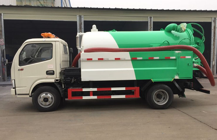 5】程力吸污車具有液壓舉升自卸功能,便于將各種污泥傾倒干凈。而且后罐門可以液壓自動開啟,便于清理罐體內的沉積物、凝固物及對罐體內部進行維修、保養。